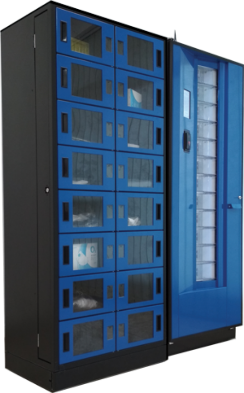 L’armadio accessorio che affianca i distributori antinfortunistici, per erogare articoli tecnici particolarmente voluminosi. I suoi 16 scomparti indipendenti possono essere adibiti anche alla restituzione. Il distributore antinfortunistico, integrato con l’armadio a 16 scomparti, diventa un vero e proprio magazzino che automatizza i processi aziendali
