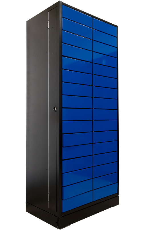 L’armadio che non necessita di alcun collegamento ai distributori automatici. E’ costituito da uno schermo touch screen da 10″ e da 30 scomparti indipendenti che possono essere adibiti per la restituzione. Si integra e si collega con gli altri modelli di armadio L16 e L32 per un massimo di otto moduli